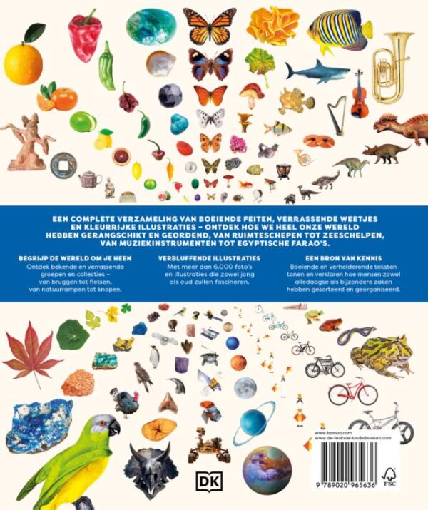 Een complete verzameling van boeiende feiten, verrassende weetjes en kleurrijke illustraties – ontdek hoe we heel onze wereld hebben gerangschikt en geordend, van ruimteschepen tot zeeschelpen, van muziekinstrumenten tot Egyptische farao’s.