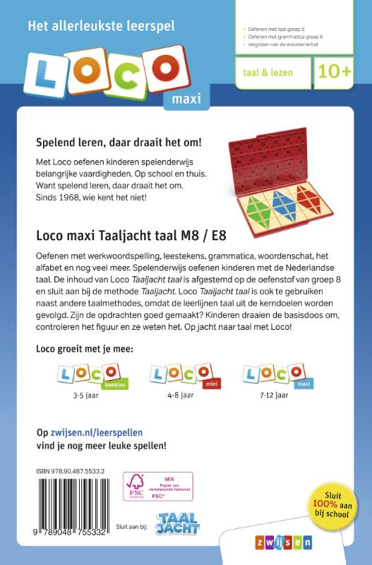 Oefenen met werkwoordspelling, leestekens, grammatica, woordenschat, het alfabet en nog veel meer. Spelenderwijs oefenen kinderen met de Nederlandse taal. De inhoud van Loco Taaljacht Taal is afgestemd op de oefenstof van groep 8 en sluit aan bij de methode Taaljacht. Loco maxi Taaljacht Taal is ook te gebruiken naast andere taalmethodes, omdat de leerlijnen taal uit de kerndoelen worden gevolgd. Zijn de opdrachten goed gemaakt? Kinderen draaien de basisdoos om, controleren het figuur en ze weten het. Op jacht naar taal met Loco!