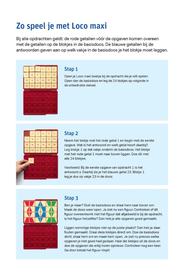 Dit oefenboekje is te gebruiken bij de Loco maxi basisdoos. Deze basisdoos is los te bestellen.