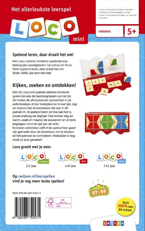 Leer analoog en digitaal klokkijken met de afwisselende opdrachten in dit Loco mini pakket. Zo oefenen kinderen zelf met de basisbegrippen van de tijd. De oefenboekjes ik leer klokkijken en ik leer tijd, dag en maand staan bomvol uitnodigende opdrachten die ze met behulp van de basisdoos maken. Al spelend leren klokkijken op een analoge en op een digitale klok. Begrippen als dag & nacht, week & maand en de seizoenen komen aan bod. Kinderen maken en controleren zelf of ze opdrachten goed hebben gemaakt door de basisdoos om te draaien en het patroon te controleren. Klokkijken is nog nooit zo leuk geweest!