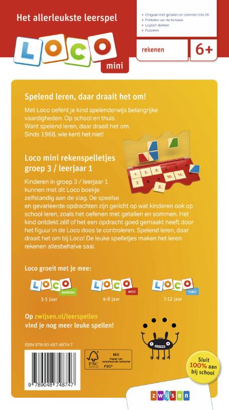 Kinderen in groep 3 /leerjaar 1 kunnen zelfstandig aan de slag met dit Loco boekje. De speelse en gevarieerde opdrachten zijn gericht op wat kinderen ook op school leren, zoals het oefenen met getallen en sommen. Het kind ontdekt zélf of het een opdracht goed gemaakt heeft door het figuur in de Loco doos te controleren. Spelend leren, daar draait het om bij Loco! De leuke spelletjes maken het leren rekenen allesbehalve saai.