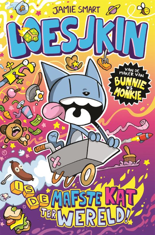 ‘Loesjkin is de mafste kat ter wereld’ is het eerste deel in de compleet gestoorde nieuwe reeks kinderboeken over Loesjkin van Jamie Smart, de Britse stripheld achter de megahit Bunnie vs Monkie.