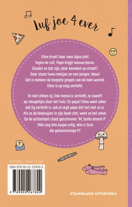 En niet alleen zij. Ook mama is verliefd, ze zweeft op vleugeltjes door het huis. En papa? Eline weet zeker dat hij verliefd is, ook al zegt papa dat het niet zo is. Als ze de bladwijzer in zijn boek ziet, weet ze het zeker. Op de achterkant staat geschreven: ‘M, tanto amore! P’ Met nog drie kusjes erbij. Wie is toch die geheimzinnige P?