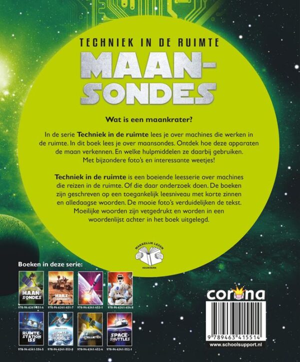 de ruimte. In dit boek lees je over maansondes. Ontdek hoe deze apparaten