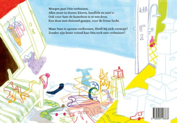 Morgen gaat Otis verhuizen. Alles moet in dozen: kleren, knuffels en auto’s. Ook voor zijn beste vriend, de kameleon Sam, is er een doos. Een doos met duizend gaatjes, voor de frisse lucht. Maar Sam is opeens verdwenen. Heeft hij zich verstopt? Otis zoekt de kameleon overal, maar tussen alle verhuisdozen en spullen is hij niet te vinden. Wat nu? Zonder zijn beste vriend kan Otis toch niet verhuizen?