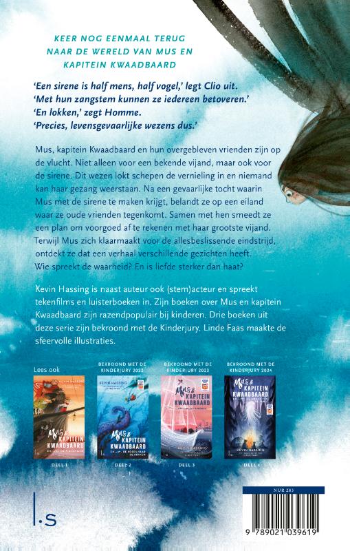 De laatste sirene is het vijfde deel over Mus en kapitein Kwaadbaard van drievoudig Kinderjury-winnaar Kevin Hassing. Met prachtige fullcolourillustraties van Linde Faas.