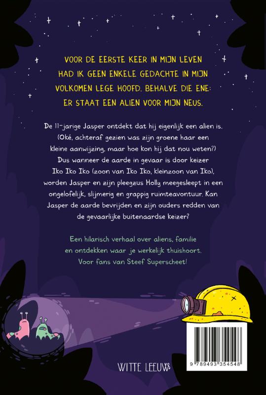 Beleef een grappig ruimteavotuur in Oeps, ik ben een alien! van Lou Treleaven, waarin de 11-jarige Jasper ontdekt dat hij eigenlijk een alien is. (Oké, achteraf gezien was zijn groene haar een kleine aanwijzing, maar hoe kon hij dat nou weten?) Dus wanneer de aarde in gevaar is door keizer Iko Iko Iko (zoon van Iko Iko, kleinzoon van Iko), worden Jasper en zijn pleegzus Holly meegesleept in een ongelofelijk, slijmerig en grappig ruimteavontuur. Een aanrader voor fans van Steef Superscheet!