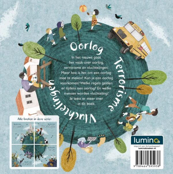 In het nieuws gaat het vaak over oorlog, terrorisme en vluchtelingen. Maar hoe is het om een oorlog mee te maken? Kun je een oorlog voorkomen? Welke regels gelden er tijdens een oorlog? En welke mensen worden vluchteling? Je leest er meer over in dit boek.