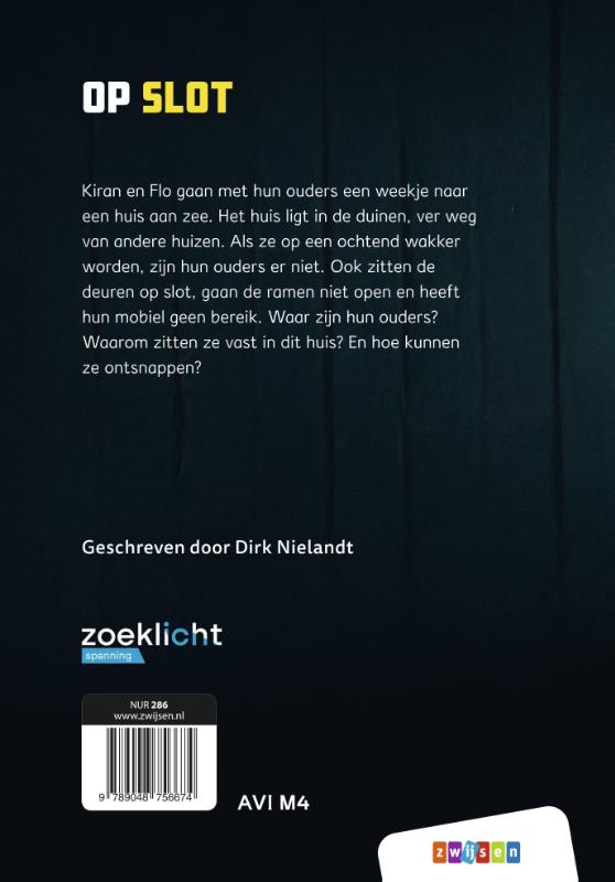 Verdwenen ouders, afgesloten ramen en deuren, en nergens bereik … Kiran en Flo zitten opeens opgesloten in hun vakantiehuis, maar weten ze ook te ontsnappen? Spannend boek op AVI M4 uit de serie Zoeklicht voor 9+.