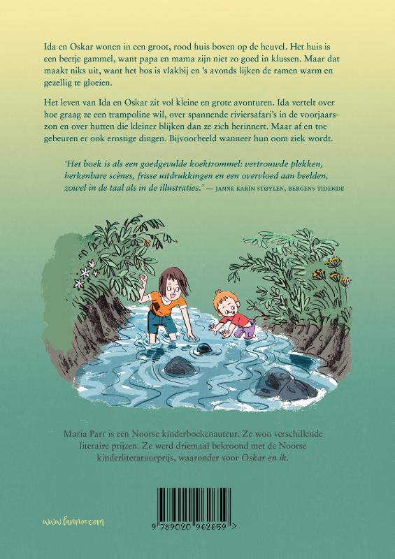 Het leven van Ida en Oskar zit vol kleine en grote avonturen. Ida vertelt over hoe graag ze een trampoline wil, over spannende riviersafari’s in de voorjaarszon en over hutten die kleiner blijken dan ze zich herinnert. Maar af en toe gebeuren er ook ernstige dingen. Bijvoorbeeld wanneer hun oom ziek wordt.