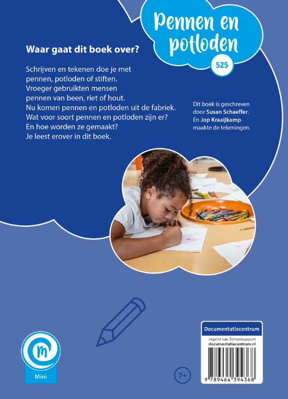 Schrijven en tekenen doe je met pennen, potloden of stiften. Vroeger gebruikten mensen pennen van been, riet of hout. Nu komen pennen en potloden uit de fabriek. Wat voor soort pennen en potloden zijn er? En hoe worden ze gemaakt? Je leest erover in dit boek.