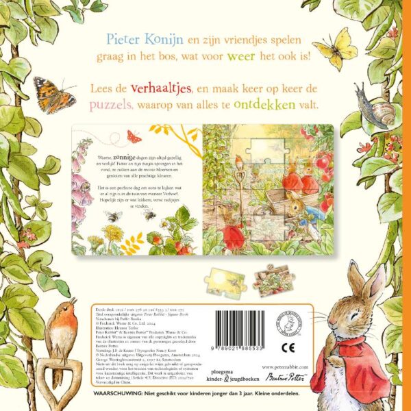 Lekker puzzelen met dit grote puzzelboek! Pieter Konijn en zijn vriendjes spelen graag in het bos, wat voor weer het ook is! Van storm tot sneeuw, en van mist tot zonneschijn: ontdek het weer en de seizoenen en maak de bijpassende puzzels. Lees de verhaaltjes en puzzel steeds opnieuw. Het perfecte cadeau om kleine pootjes uren mee bezig te houden.