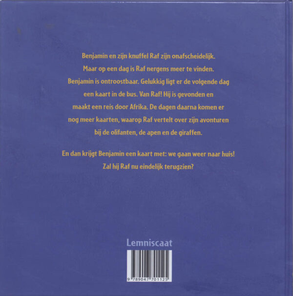 Benjamin raakt Raf, zijn lievelingsknuffel, kwijt. Hij is ontroostbaar. Gelukkig blijkt dat Raf Benjamin niet vergeten is. Iemand heeft hem gevonden en mee naar Afrika genomen. Raf stuurt kaarten naar huis over zijn avonturen – zo kan Benjamin met hem mee leven en zijn verdriet vergeten.
