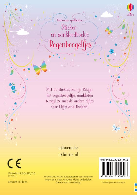 In dit betoverende stickerboekje volg je Robijn het regenboogelfje tijdens haar tocht door Elfjesland. Versier de oranje bomen en gele weide met stickers en zie hoe ze met haar toverstokje een regenboog in de lucht tekent. Met ruim 200 stickers van kleding, dieren en bloemen waarmee de regenboogelfjes en de illustraties versierd kunnen worden.