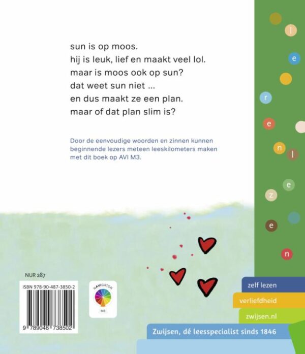 Aantrekkelijk leesboek op AVI M3, speciaal voor kinderen die net leren lezen. Over Sun die op Moos is. Maar is Moos ook op Sun? Door de korte woorden en eenvoudige zinnen kunnen beginnende lezers meteen leeskilometers maken.