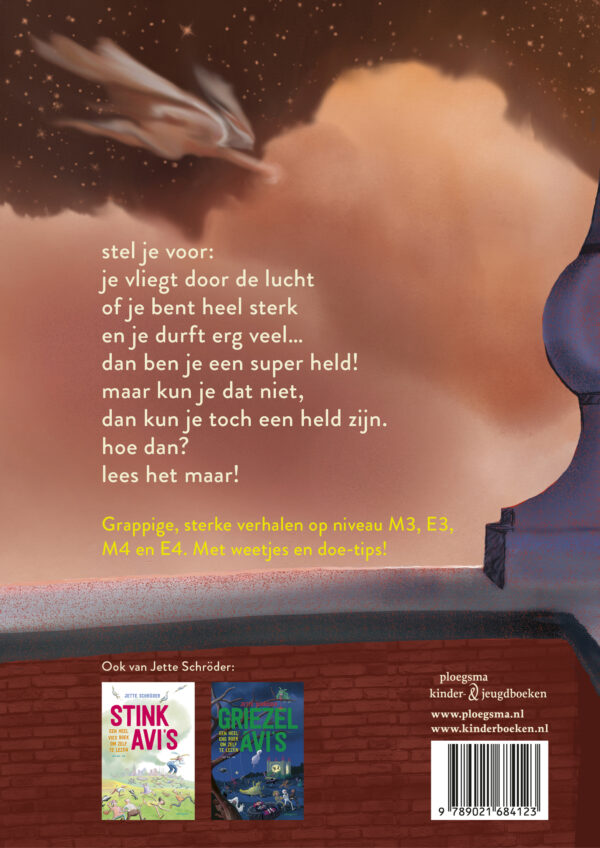 Onzichtbaar zijn of supersterk, gedachten kunnen lezen, jezelf piepklein kunnen maken of kunnen vliegen… Wie droomt er niet van? Na het succes van Stink AVI’s en Griezel AVI’s komt Jette Schröder met een splinternieuw avi-boek, over (super)helden.