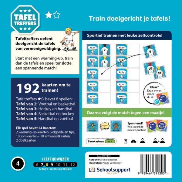 Auteur Marcel de Reuver, ervaren leerkracht en spelontwerper, noemt dit zijn “leukste spel bedacht, ooit”! Trainen op ‘tafelpower’ en daarna ‘matchen’ met ‘speed’ tegen elkaar. Kinderen oefenen alleen én spelen tegen elkaar. Didactisch doordacht door een ervaren leerkracht, methodisch makkelijk in te zetten, én aantrekkelijk om in te zetten in je klas of praktijk. Natuurlijk ook geschikt voor oefening thuis.