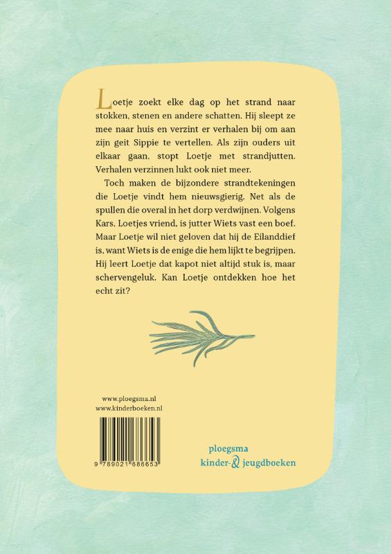Toch maken de bijzondere strandtekeningen die Loetje vindt hem nieuwsgierig. Net als de spullen die overal in het dorp verdwijnen. Volgens Kars, Loetjes vriend, is jutter Wiets vast een boef. Maar Loetje wil niet geloven dat hij de Eilanddief is, want Wiets is de enige die hem lijkt te begrijpen. Hij leert Loetje dat kapot niet altijd stuk is, maar schervengeluk. Kan Loetje ontdekken hoe het echt zit?