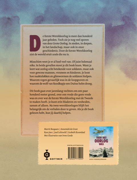 ‘Toen het oorlog was, 1914-1918’ gaat over jarenlang vechten om een paar honderd meter grond, over een vrede die geen vrede was en over wat de Eerste Wereldoorlog met de Tweede te maken heeft. Je kunt erin bladeren en verdwalen, samen of alleen. Na twee wereldoorlogen blijft het belangrijk om de verhalen door te geven. Als je dit boek gelezen hebt, kun jij daarbij helpen.