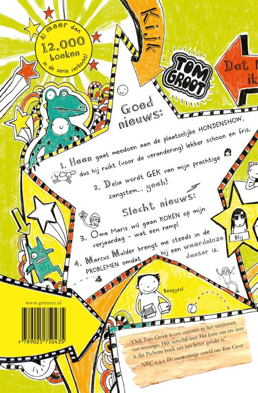 ‘School begint weer, maar dat is geen ramp. Er gaat genoeg leuks gebeuren. Haan gaat meedoen aan een hondenshow, de schooldisco komt eraan en ik ben bijna jarig. En het goede nieuws is dat Delia voor geen van deze dingen is uitgenodigd. Het enige wolkje aan de horizon is mijn verjaardag, want oma heeft beloofd dat ze zal gaan koken… uh-oh!’