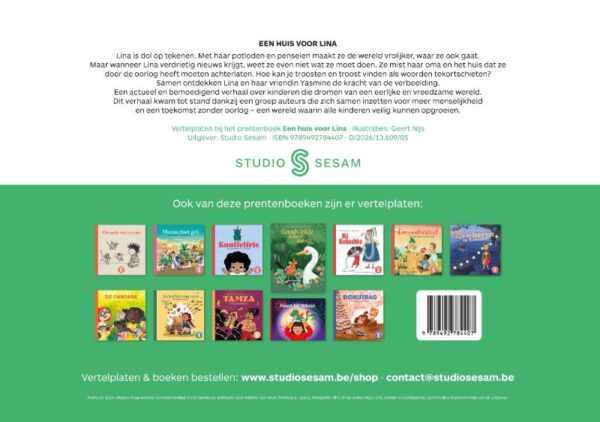 Met de vertelplaten Een huis voor Lina kan het verhaal in groep verteld worden. Lina is dol op tekenen. Met haar potloden en penselen maakt ze de wereld vrolijker, waar ze ook gaat. Maar wanneer Lina verdrietig nieuws krijgt, weet ze even niet wat ze moet doen. Ze mist haar oma en het huis dat ze door de oorlog heeft moeten achterlaten. Hoe kan je troosten en troost vinden als woorden tekortschieten? Samen ontdekken Lina en haar vriendin Yasmine de kracht van de verbeelding.