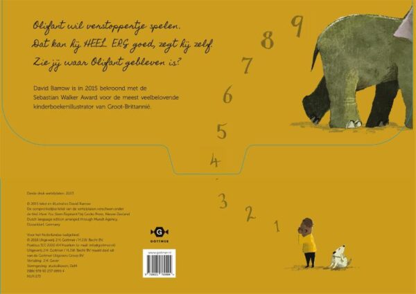 In ‘Heb jij misschien olifant gezien?’ speelt een jongetje verstoppertje met een olifant. Het jongetje telt tot tien en de olifant gaat zich verstoppen – dat kan hij HEEL ERG goed, waarschuwt hij nog. En hij krijgt gelijk! Hoewel de lezer hem duidelijk kan zien zitten, staart het jongetje steeds weer verbaasd in het rond. De 15 prachtig geïllustreerde platen zijn ideaal om te laten zien tijdens het voorlezen van het verhaal.