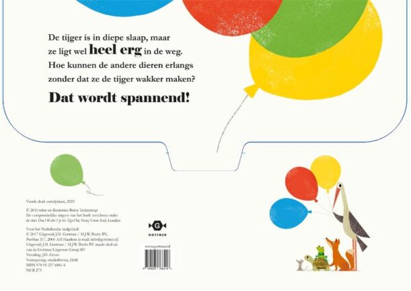 Ssst! De tijger slaapt en we willen haar niet wakker maken. Er is alleen een probleem: alle dieren moeten erlangs en ze ligt vreselijk in de weg. Hoe gaan ze dat oplossen? Gelukkig heeft de slimme kikker een idee: alle dieren zweven een voor een met een ballon over de tijger heen. Maar de dieren hebben wel hulp nodig. De lezer wordt dan ook aangemoedigd de dieren veilig over de tijger heen te krijgen door te blazen, te aaien, te wiegen en zelfs een slaapliedje te zingen. Zal het alle dieren lukken veilig aan de overkant te komen? En zeg, waar zijn al die ballonnen eigenlijk voor?