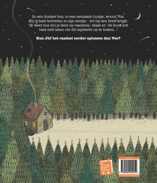 In een donker bos, in een eenzaam huisje, woont Vos. Hij is best heel tevreden in zijn eentje – tot er een speciale brief wordt bezorgd. Ik weet hoe dol je bent op raadsels, staat er. Je kunt het vast niet laten om dit mysterie op te lossen…