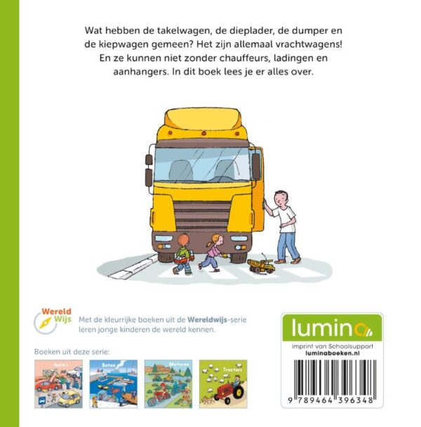 Wat hebben de takelwagen, de dieplader, de dumper en de kiepwagen gemeen? Het zijn allemaal vrachtwagens! En ze kunnen niet zonder chauffeurs, ladingen en aanhangers. In dit boek lees je er alles over.