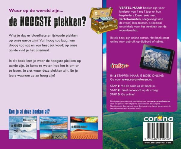 In dit boek lees je waar de hoogste plekken op aarde zijn. Je komt te weten hoe het is om er te leven. Je ziet waar deze plekken zijn. En je