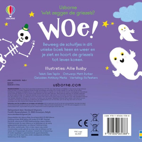 Met een schakelaar achter op het boek om het geluid aan en uit te zetten.Dit boek maakt deel uit van een unieke serie vol verrassingen die kinderen kunnen ontdekken.Met tien griezelige geluiden.