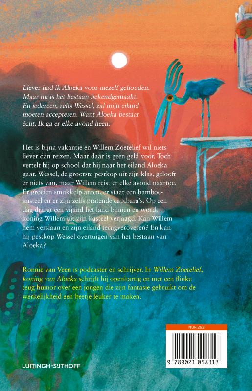 Willem Zoetelief wil niets liever dan reizen. Maar met een werkloze vader is er geen geld voor vakanties. Gelukkig heeft Willem Aloeka: een eiland met een eigen vlag, een volkslied en bijzondere vogelsoorten. Willem reist er ‘s avonds naartoe om er allerlei avonturen te beleven. Op een dag meren ongewenste gasten aan op de Aloekaanse kust. Ze verjagen koning Willem uit zijn kasteel en zetten het eiland op z’n kop. Kan Willem zijn eiland heroveren? En kan hij op school pestkop Wessel overtuigen van het bestaan van Aloeka?