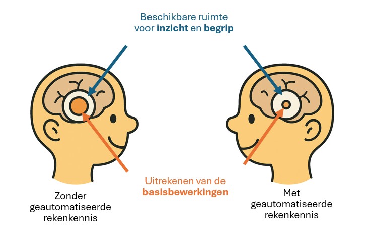 Uit cognitieve psychologie weten we dat het werkgeheugen beperkt is. Als leerlingen bij elke som nog moeten nadenken over basisbewerkingen, blijft er weinig ruimte over voor strategie, inzicht en probleemoplossing. Automatiseren ontlast het werkgeheugen. Daardoor kunnen leerlingen zich richten op het begrijpen van de opgave, in plaats van op het uitvoeren van losse rekenstappen. En dát maakt leren effectiever.
