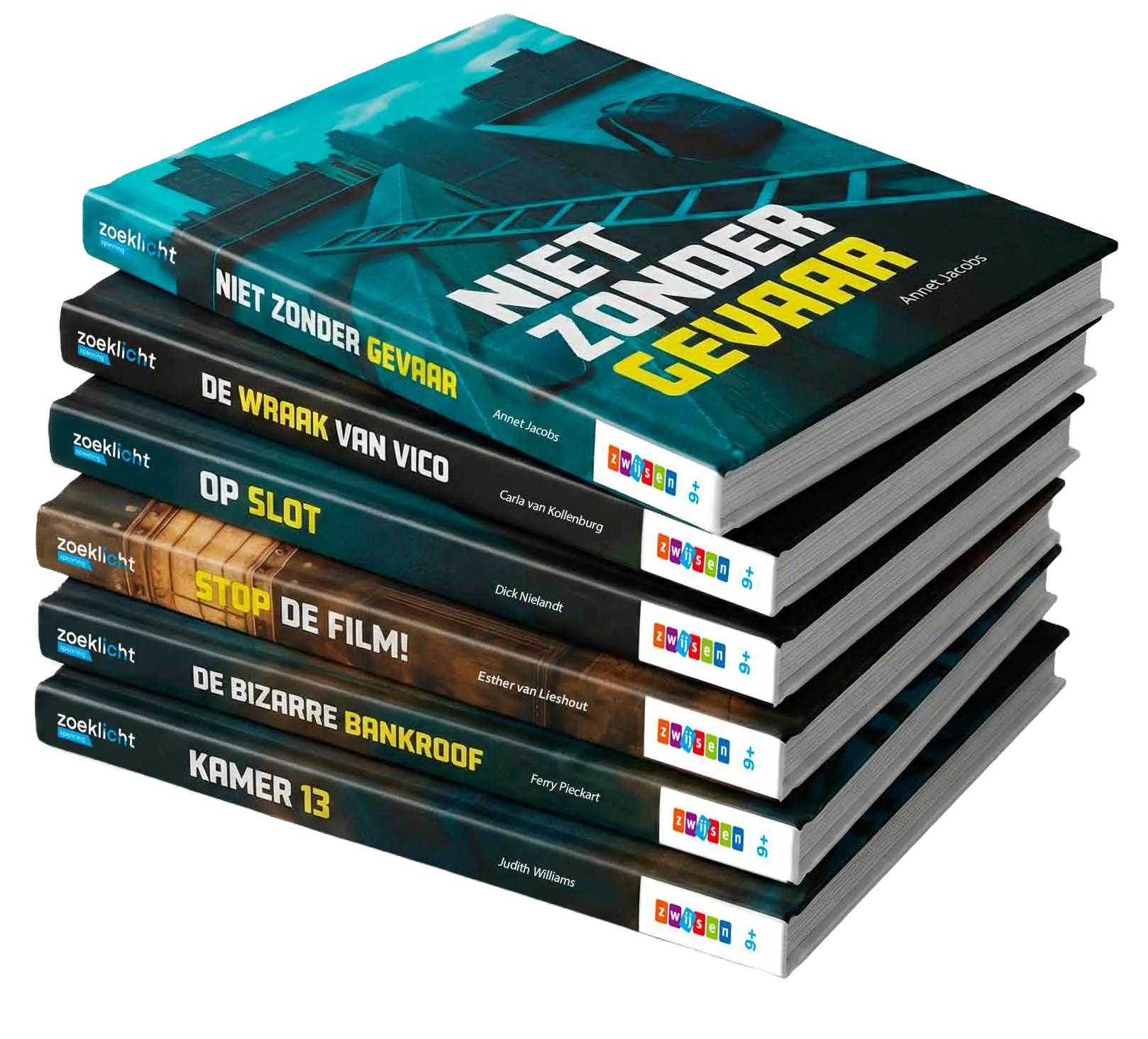 De bekende Zoeklicht-serie is volledig vernieuwd: met sterke verhaallijnen, actuele thema’s en een uitstraling die kinderen vanaf 10 jaar motiveert om te blijven lezen. Zélfs kinderen die moeite hebben met lezen.