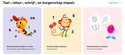 - Voor voorbereidend rekenen vind je alle activiteiten gebundeld per rekendomein, zoals meten, meetkunde en verhoudingen.