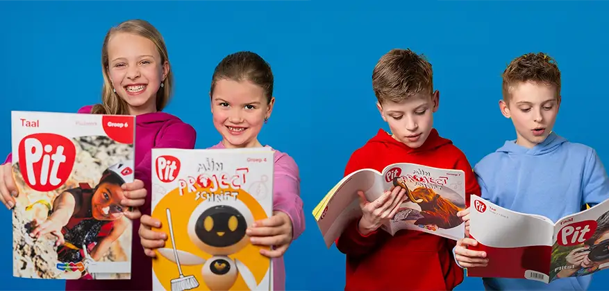 Ben je nog geen gebruiker en wil je weten wat Pit jouw school te bieden heeft? Taal- en spellingmethode Pit zorgt voor een stevig taal- en spellingfundament met taalvaardige leerlingen. Je onderwijst de juiste strategieën, werkt spelenderwijs aan het toepassen van geleerde kennis en vaardigheden, én je hebt in elke les aandacht voor woordenschat. Lees meer of vraag meteen een zichtzending aan!