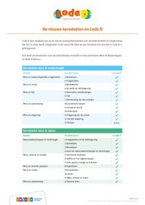 Bekijk hieronder het overzicht van alle kerndoelen mens en natuur en Code D. Met de download Code D en de kerndoelen zie je precies hoe de kerndoelen binnen de methode zijn uitgewerkt.