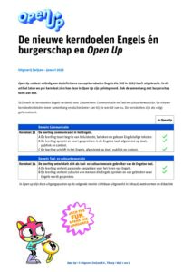 Bekijk hieronder het overzicht van alle kerndoelen Engels. Met de download Open Up en de kerndoelen (binnenkort beschikbaar) zie je precies hoe de kerndoelen binnen de methode zijn uitgewerkt.