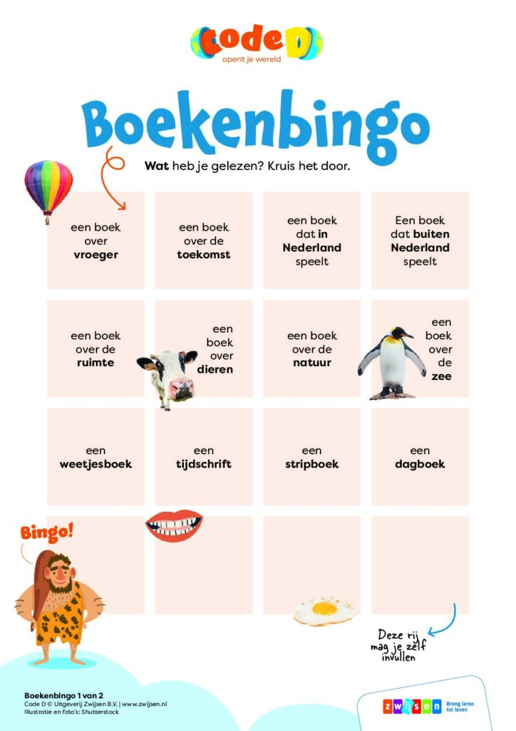 Om het extra leuk te maken, hebben we twee vrolijke boekenbingokaarten gemaakt. Daarmee houden leerlingen bij wat, waar én hoe ze hebben gelezen. Wie weet vult iemand als eerste alle vakjes!